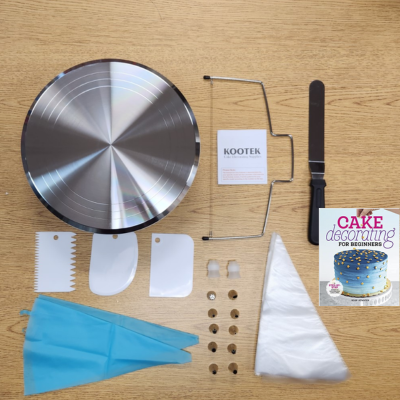 The Cake Decorating kit has a collection of supplies to facilitate decorating cookies, cakes and other baked goods.