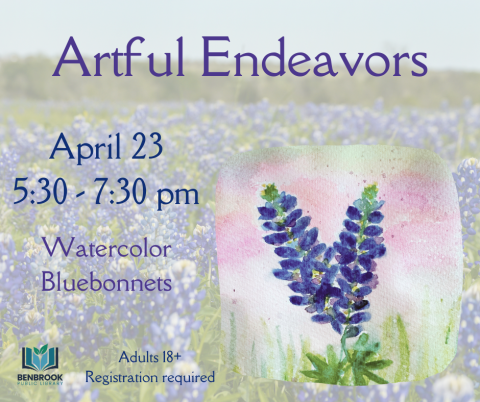 Celebrate Texas wildflower season with this watercolor class featuring bluebonnets. All levels of experience welcome and we provide all of the supplies.