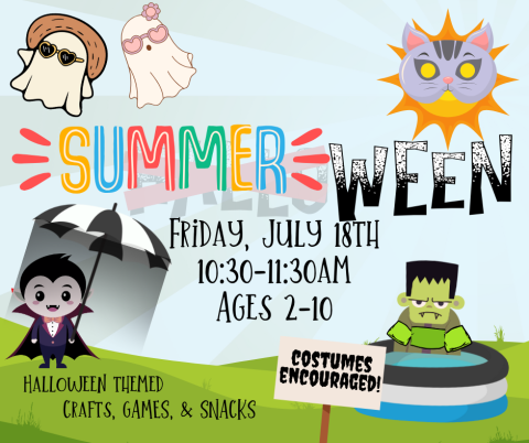 Halloween in the summer!? SOUNDS GREAT TO US! Come celebrate spooky season early with us where we enjoy all things Halloween. We will have snacks, crafts, and games all dedicated to the Halloween spirit. Costumes welcome and ENCOURAGED!