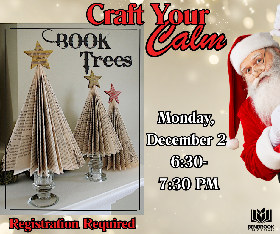 Book trees with Santa peeking around the corner
