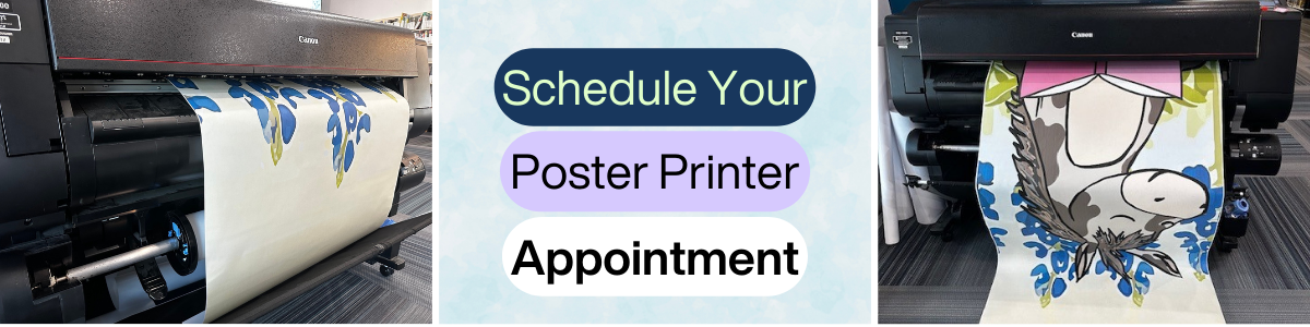 Our large format printer will print signs and posters up to 36" wide.  We have different paper types to help with your designs, including glossy and regular bond paper.