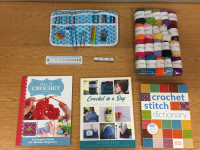 MANIPULATIVES: Crochet kit (includes: crochet hooks (12, various sizes), stitch holders (2), stitch markers (10), crochet yarn needles (6), row counter, measuring tape, knitting needle gauge and ruler, folding scissors, carrying case)