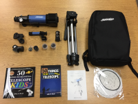 MANIPULATIVES: Telescope kit (includes: telescope tube, tripod, 20mm eyepiece, 10mm eyepiece, 45 degree erecting diagonal lens, finderscope, lens cleaning wipe)